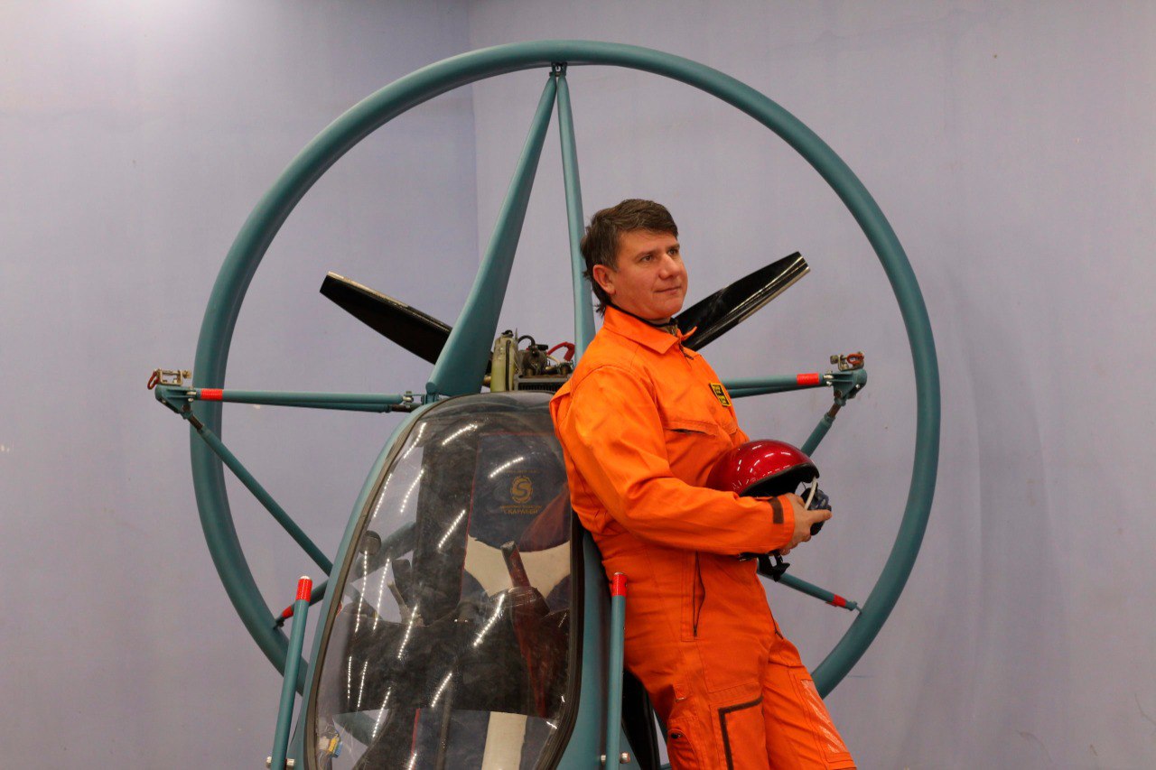 Selected milestones: early model rocketry at 6; first parachute jump at 13; first aircraft (“Dolphin”) at 14; honors graduate of Kaliningrad Aerospace College; MAI degree (aircraft & helicopter design). He has authored multiple patents and led expeditions, including polar and high-altitude test campaigns.