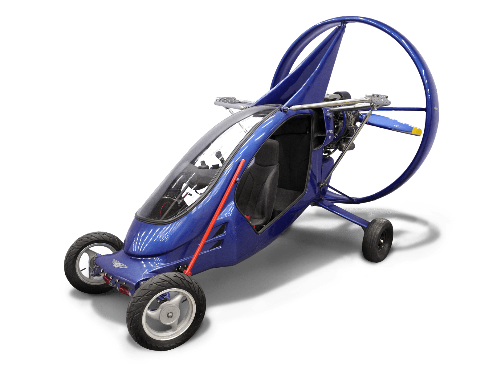 Optionally manned and unmanned single-seat composite aircraft with electric wheel chassis. Its wings fold along the body or are removed, which allows the device to easily travel on the road. Aircraft without an airfield base — designed for use on unpaved sites and takeoff / landing from country roads.